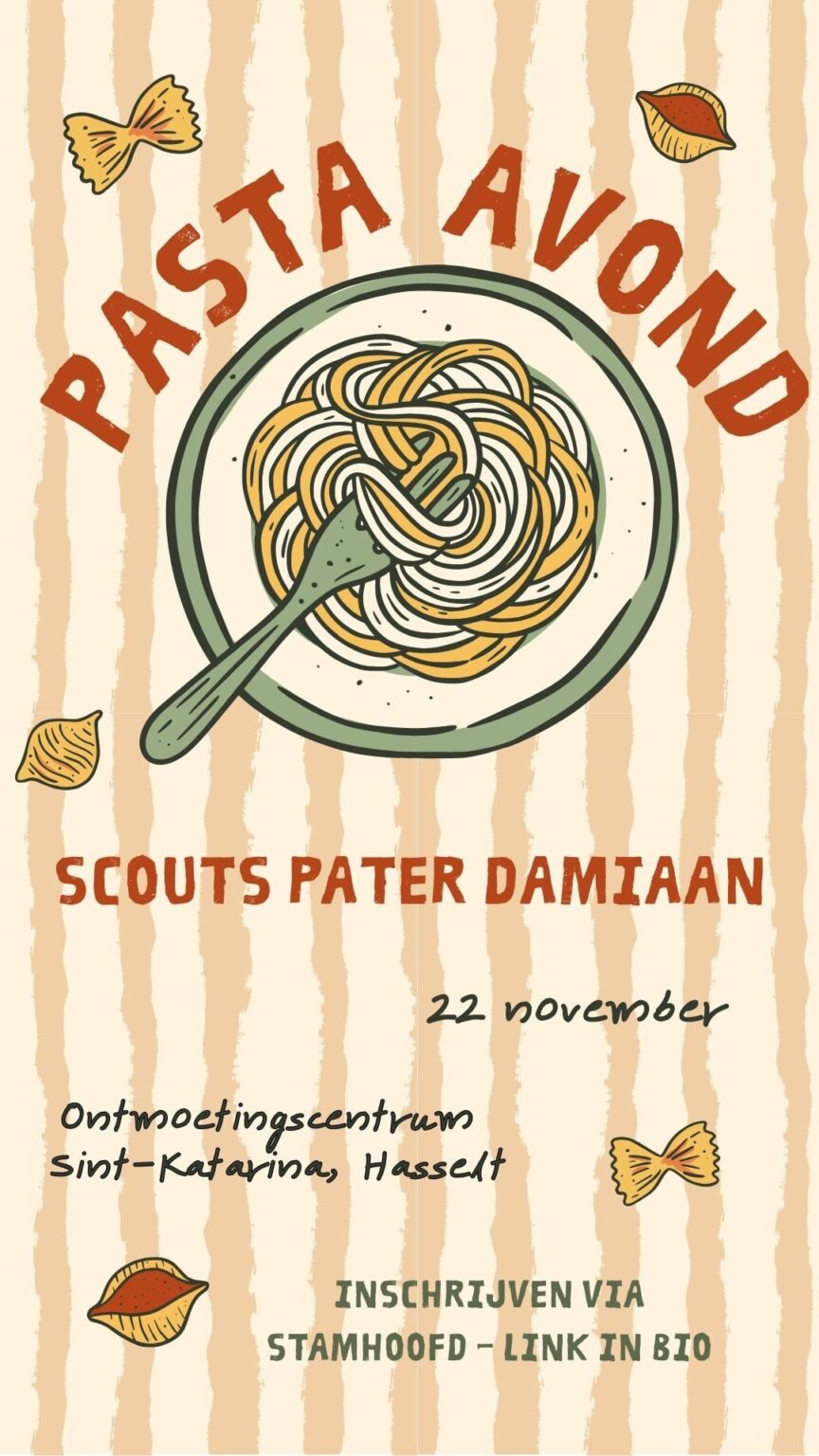 Inschrijven doe je voor 13 november via deze link (Stamhoofd): https://shop.stamhoofd.be/pasta-avond-pd-22-11